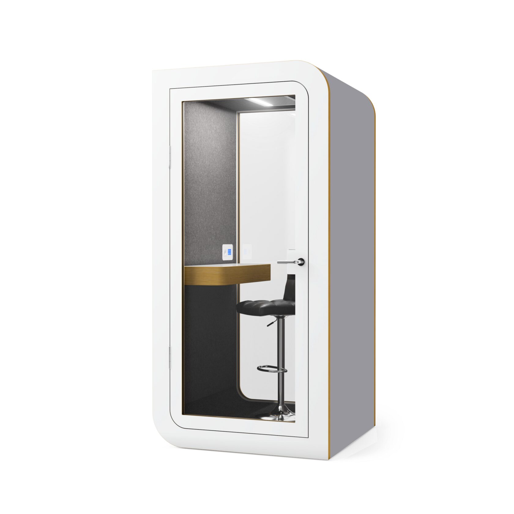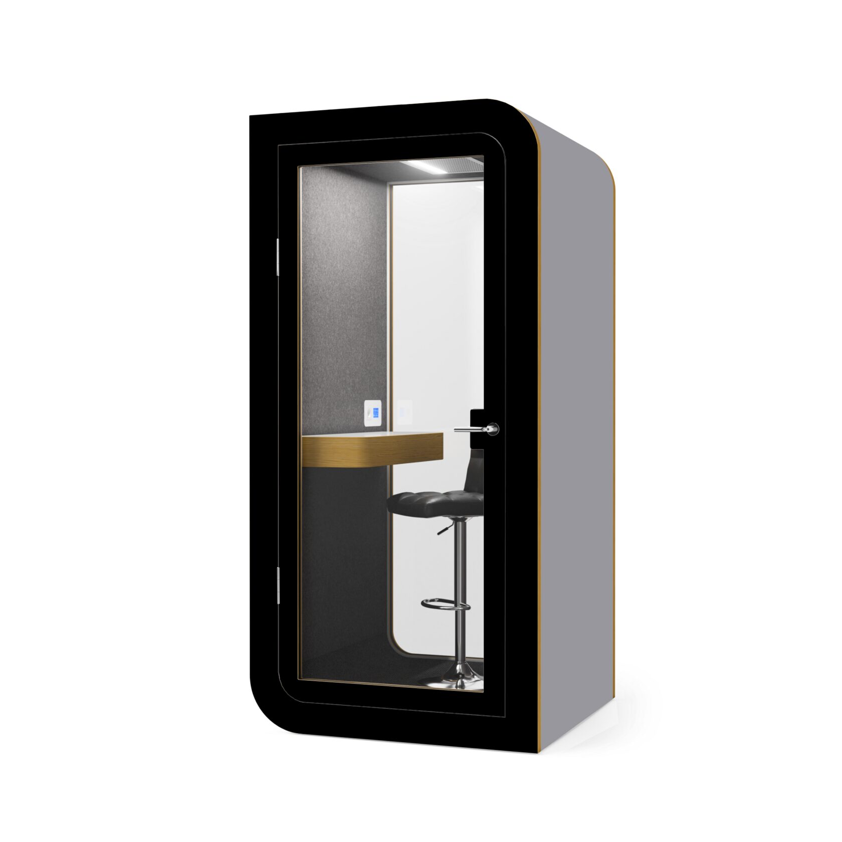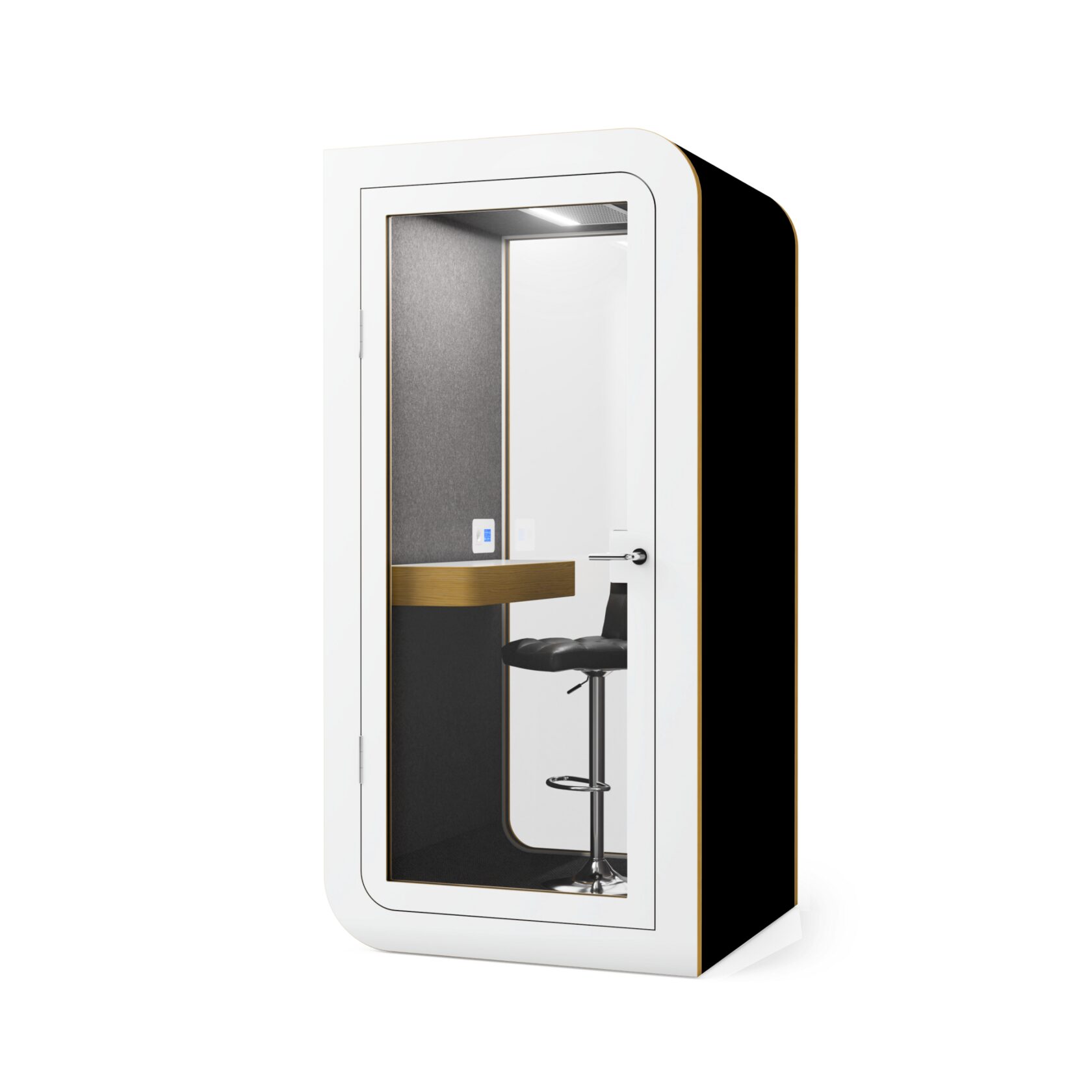 Die Kabine ist innerhalb von 60 Minuten installiert, kann leicht verschoben werden und ist mit einer geräuscharmen Belüftung, USB-Anschlüssen und einem bequemen Laptop-Tisch ausgestattet. Sie bietet alles für einen reibungslosen Betrieb und absolute Konzentration.
