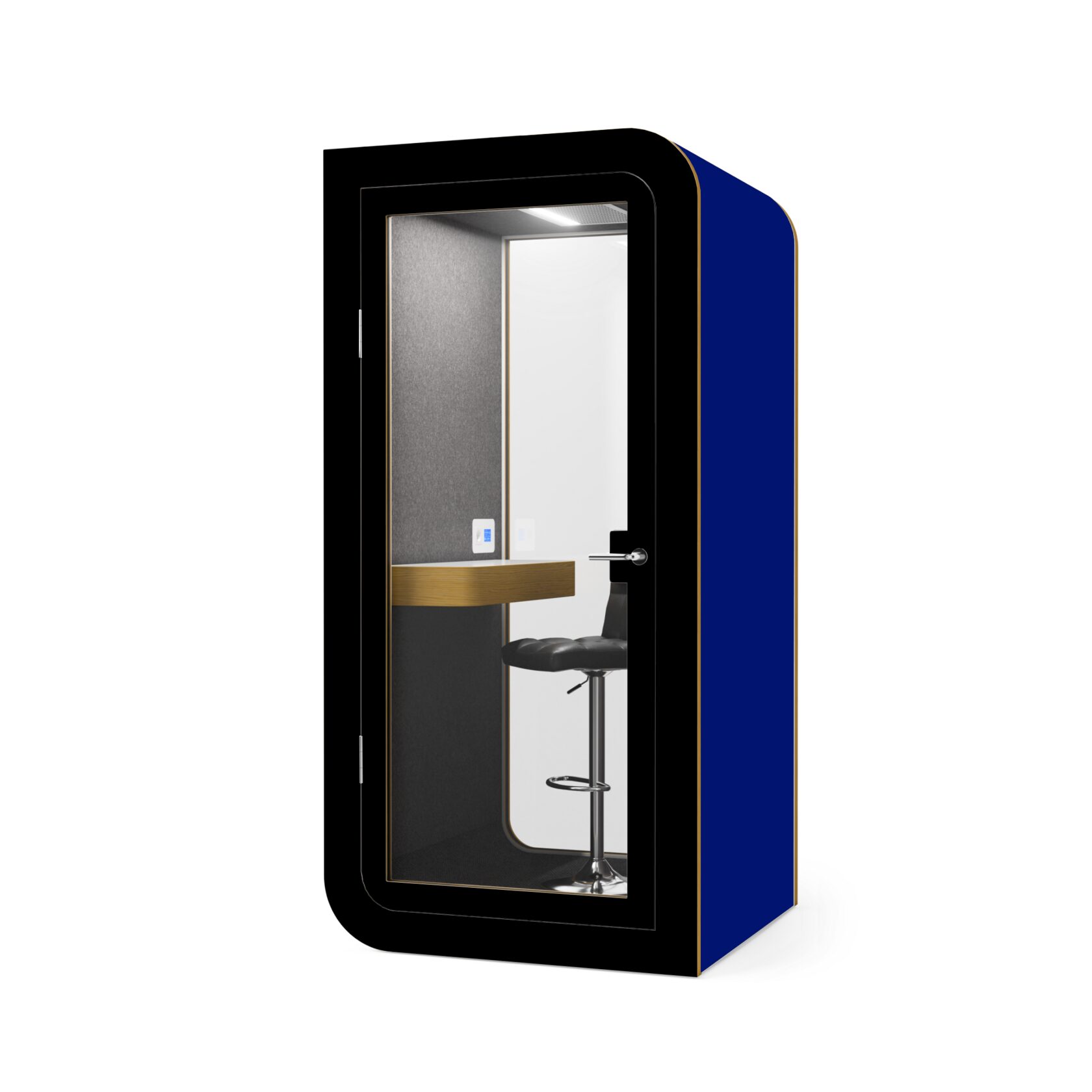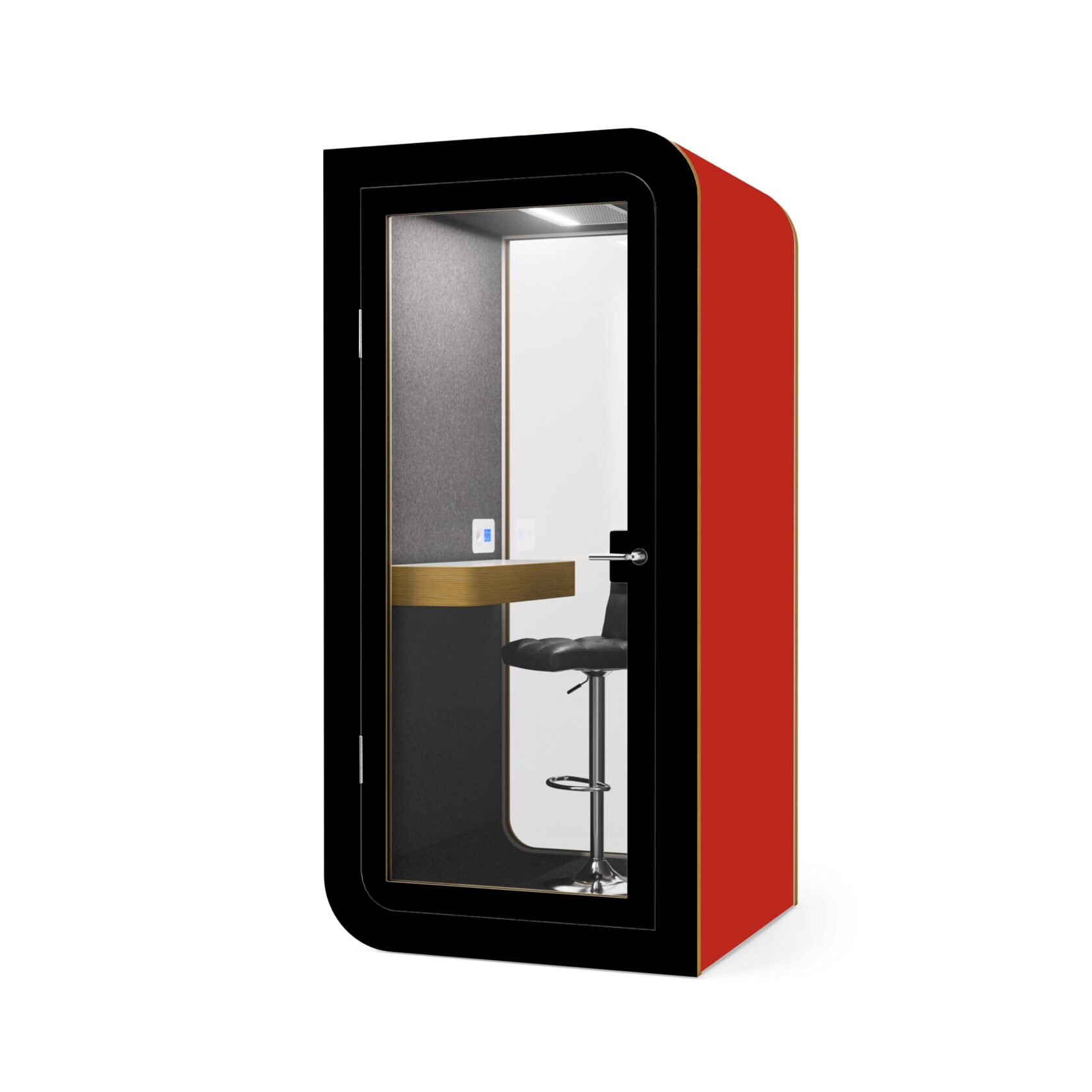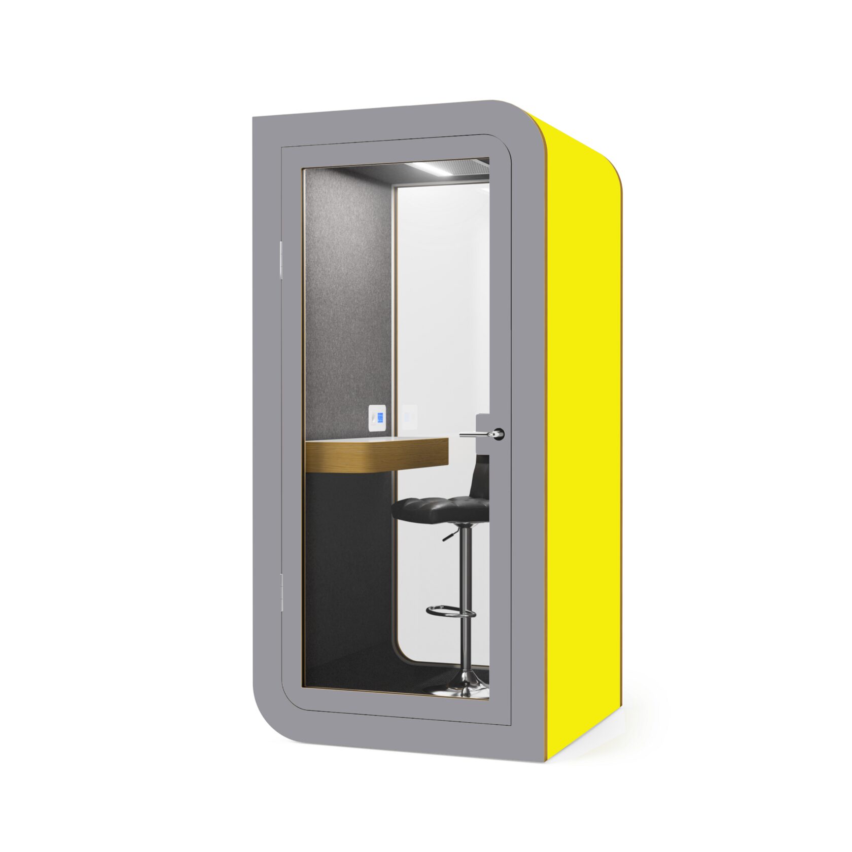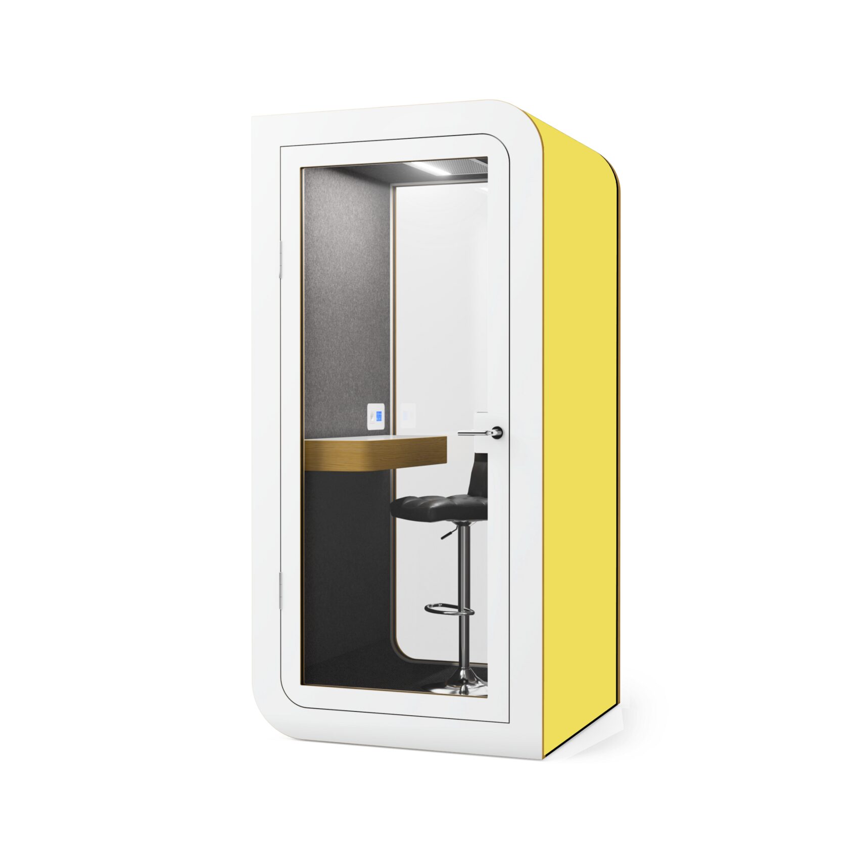 Die Kabine ist innerhalb von 60 Minuten installiert, kann leicht verschoben werden und ist mit einer geräuscharmen Belüftung, USB-Anschlüssen und einem bequemen Laptop-Tisch ausgestattet. Sie bietet alles für einen reibungslosen Betrieb und absolute Konzentration.